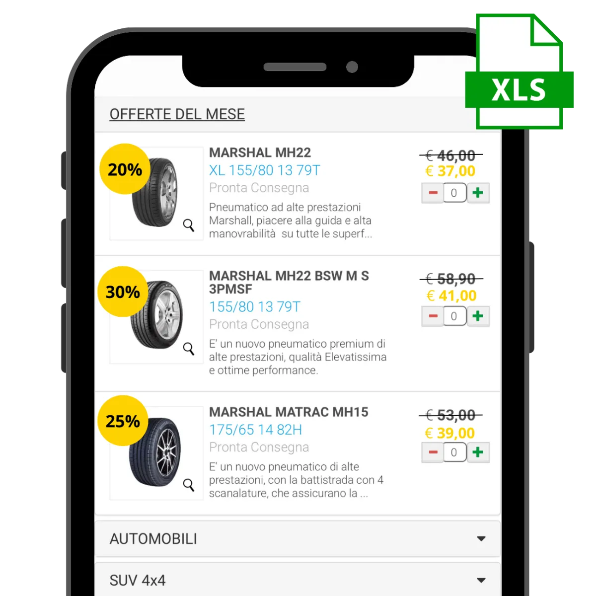 Un semplice e potente Shop Mobile per pneumatici ed accessori, gestibile da un semplice Excel.
