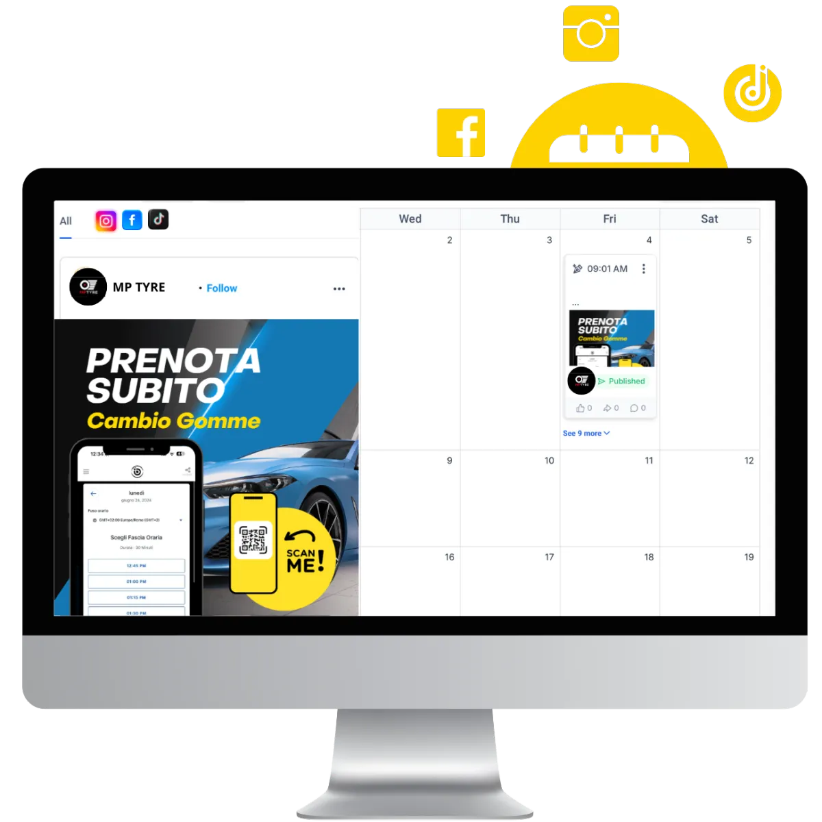Certo! Grazie al Planner Social incluso nel pacchetto BASIC e PRO, puoi programmare Post e Stories su Facebook e Instagram e tanti altri Social in anticipo, mantenendo attiva la tua presenza online.