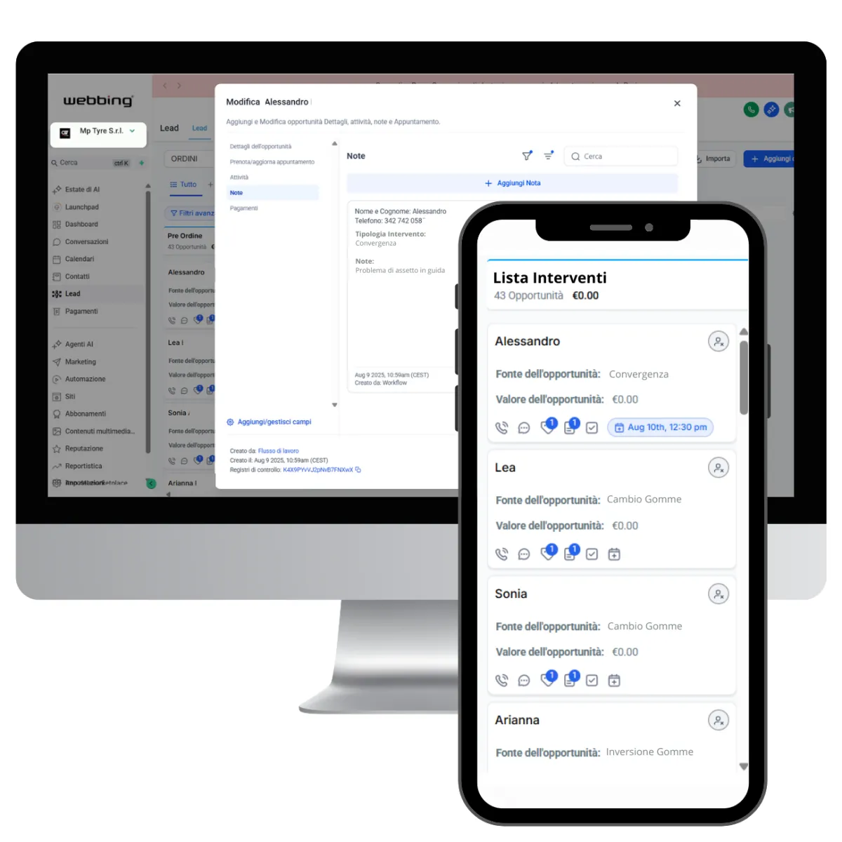 Un vero alleato per chi lavora a contatto col pubblico. Grazie alla gestione dei contatti automatizzata, oggi comunichiamo in modo più ordinato e professionale. Le notifiche ai clienti arrivano puntuali, e noi possiamo concentrarci di più sul lavoro in officina. Inoltre, tutto è accessibile anche da smartphone, quindi possiamo gestire le richieste anche fuori sede. Assolutamente consigliato!